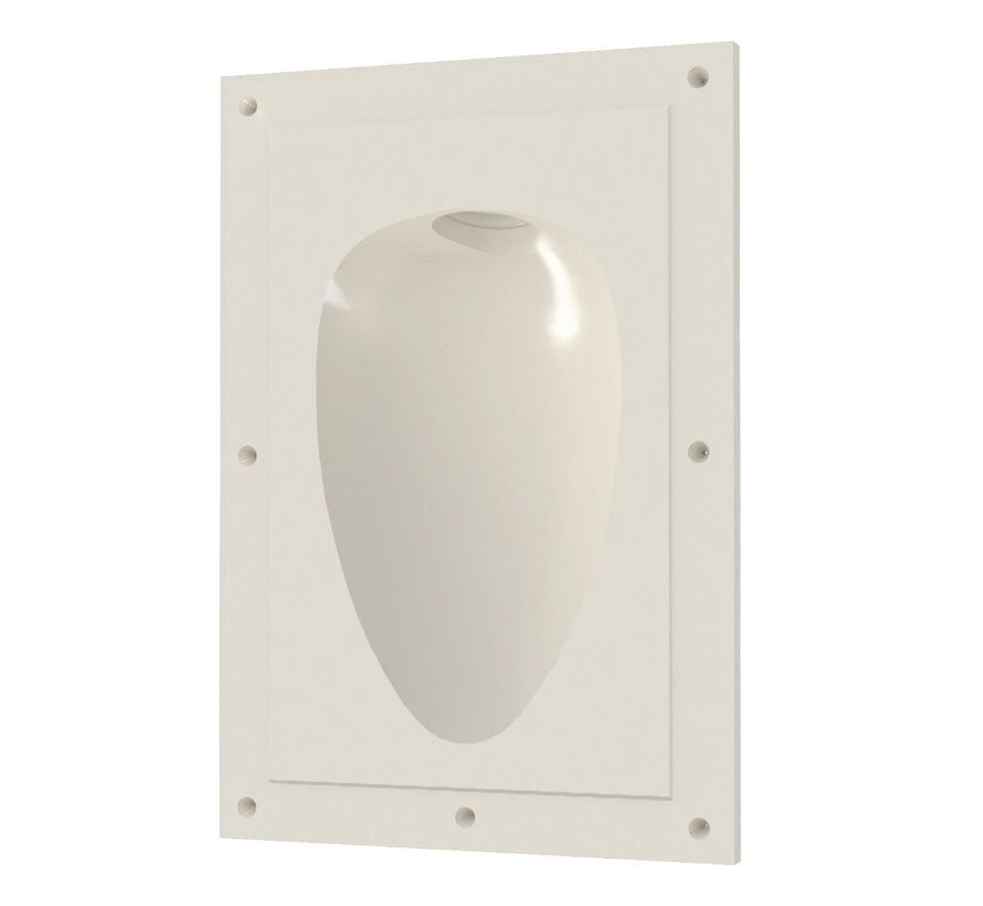 Flame trimless wand inbouw ledspot is vervaardigd van overschilderbaar gips en laat na inbouwen een ovale lichtopening om een trap aan te lichten of als oriëntatie verlichting in een gang.