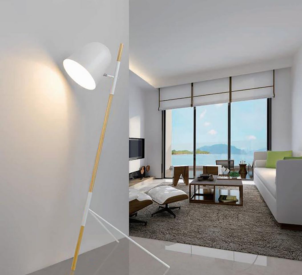 Vloer lamp wit 1l “Sensa” 150h kap 27x27cm snoerschak E27